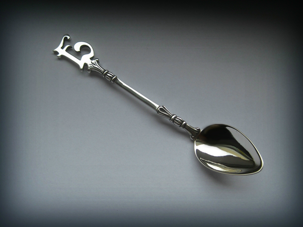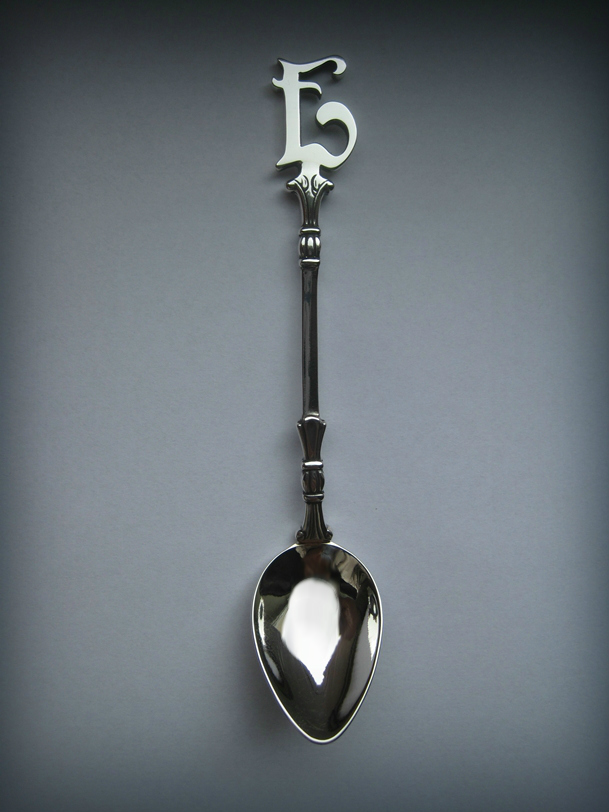 Az egyszerű monogramos kanalak körülbelül 15 gramm 925-ös sterling ezüstből készültek. A kanálfej préselt ezüstlemezből van és a szárhoz van forrasztva.