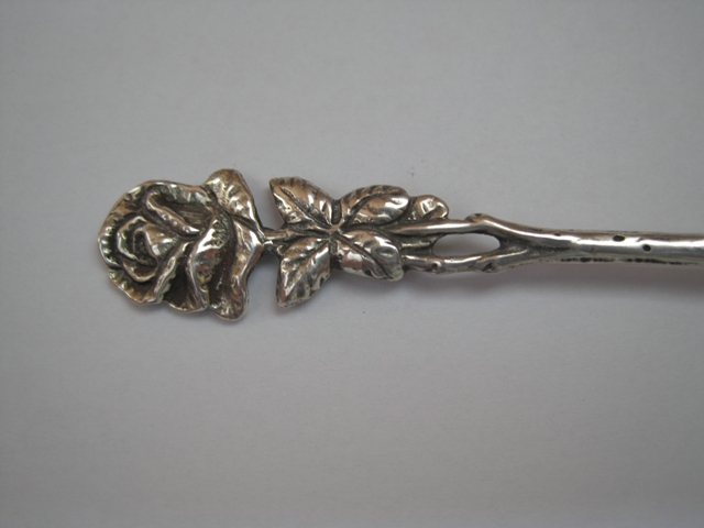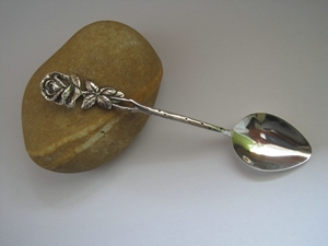 A rózsa végződés mintázata a klasszikus hildesheimer rózsás antik kanál másolata.