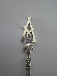 Vastag masszív ezüst lemezből lett kifűrészelve, kireszelgetve, kialakítva a két díszes monogram.