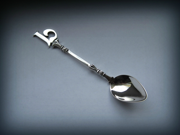 Az egyszerű monogramos kanalak körülbelül 15 gramm 925-ös sterling ezüstből készültek. A kanálfej préselt ezüstlemezből van és a szárhoz van forrasztva.