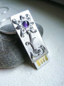 Nem csak az ékszer formai szempontjából, hanem az ötlet és funkció oldaláról is. Ez a harmadik ilyen medálom, de a két első ilyen ékszerem tapasztalataiból tanulva továbbfejlesztettem a modellt.( az értékeléseim között megtalálható az előző medálok visszajelzése.) Az előzővel ellentétben ezt a pendrive-ot nem szétszedhetőre, hanem kibujtathatóra terveztem, valamint az akasztó oly módon van elkészítve, hogy egy egyszerű mozdulattal levehető a nyakláncról, nem kell ezért a nyakból kiakasztani, kikapcsolni. Kényelmesebb továbbfejlesztett modellje az első ilyen ékszeremnek.